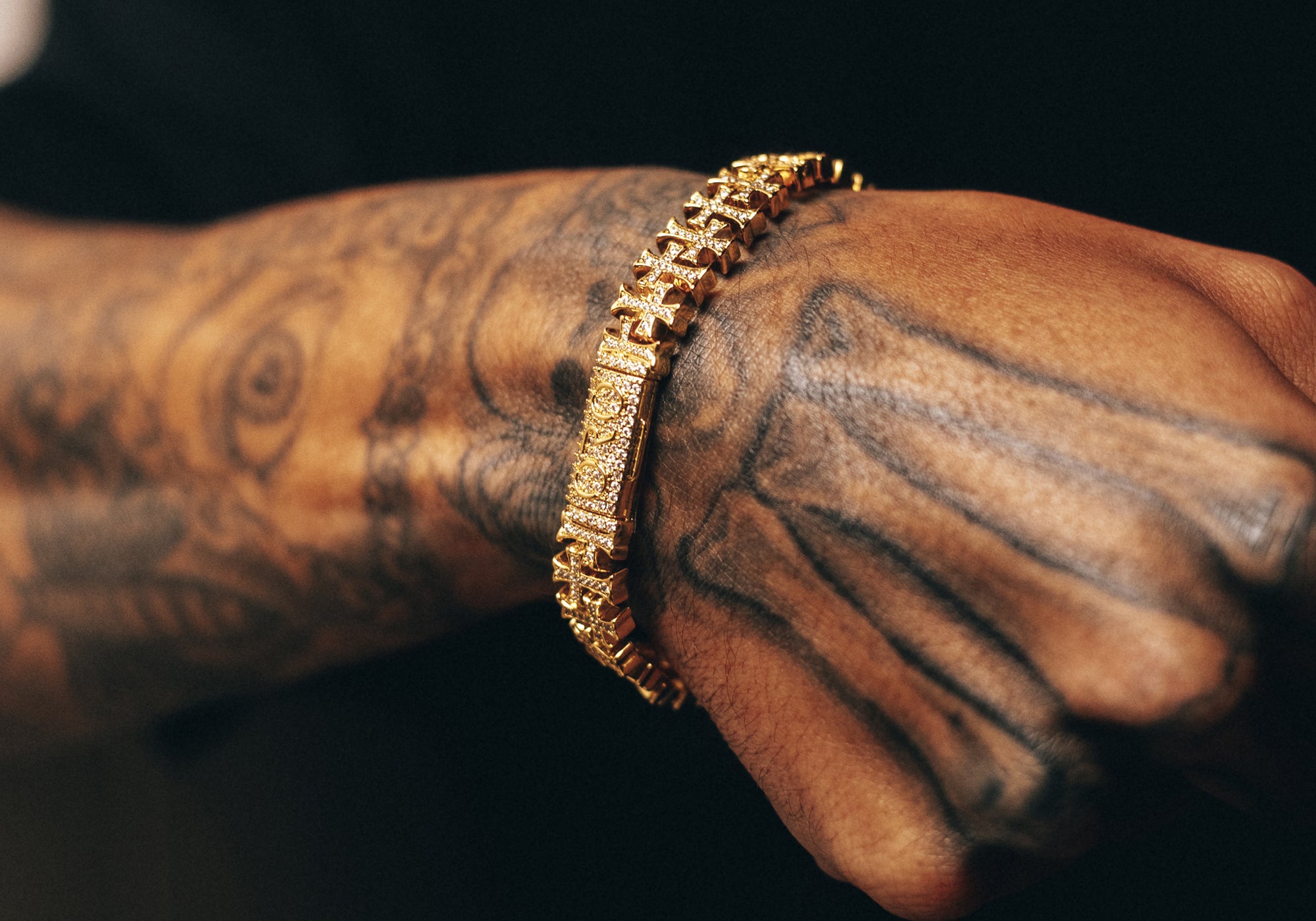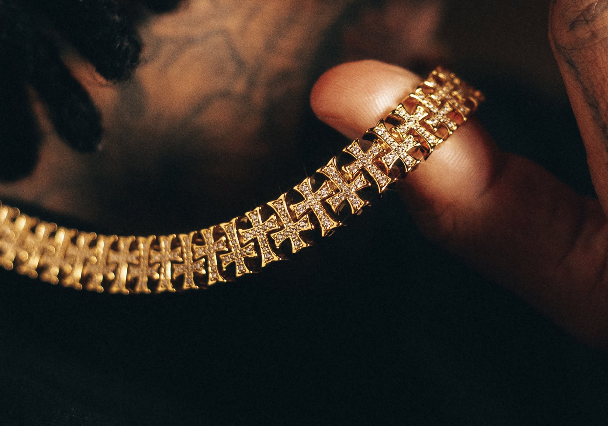 The Cathedral Cross Bracelet is a statement piece for those who value strength and individuality. With a row of meticulously crafted Hommes Oro Cathedral Cross motifs, this bracelet wraps your wrist in a bold symbol of conviction. Each cross, edged in gold or rhodium finishes and accented with pavé stones, exudes a vibe that’s both refined and rebellious. Wear it as a testament to your journey and let it be a reminder to always stay true to who you are.