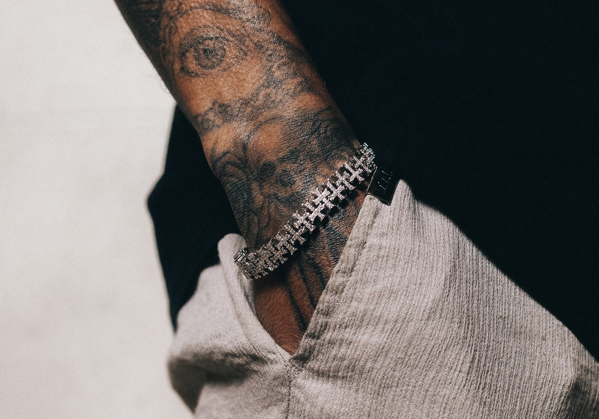 The Cathedral Cross Bracelet is a statement piece for those who value strength and individuality. With a row of meticulously crafted Hommes Oro Cathedral Cross motifs, this bracelet wraps your wrist in a bold symbol of conviction. Each cross, edged in gold or rhodium finishes and accented with pavé stones, exudes a vibe that’s both refined and rebellious. Wear it as a testament to your journey and let it be a reminder to always stay true to who you are.