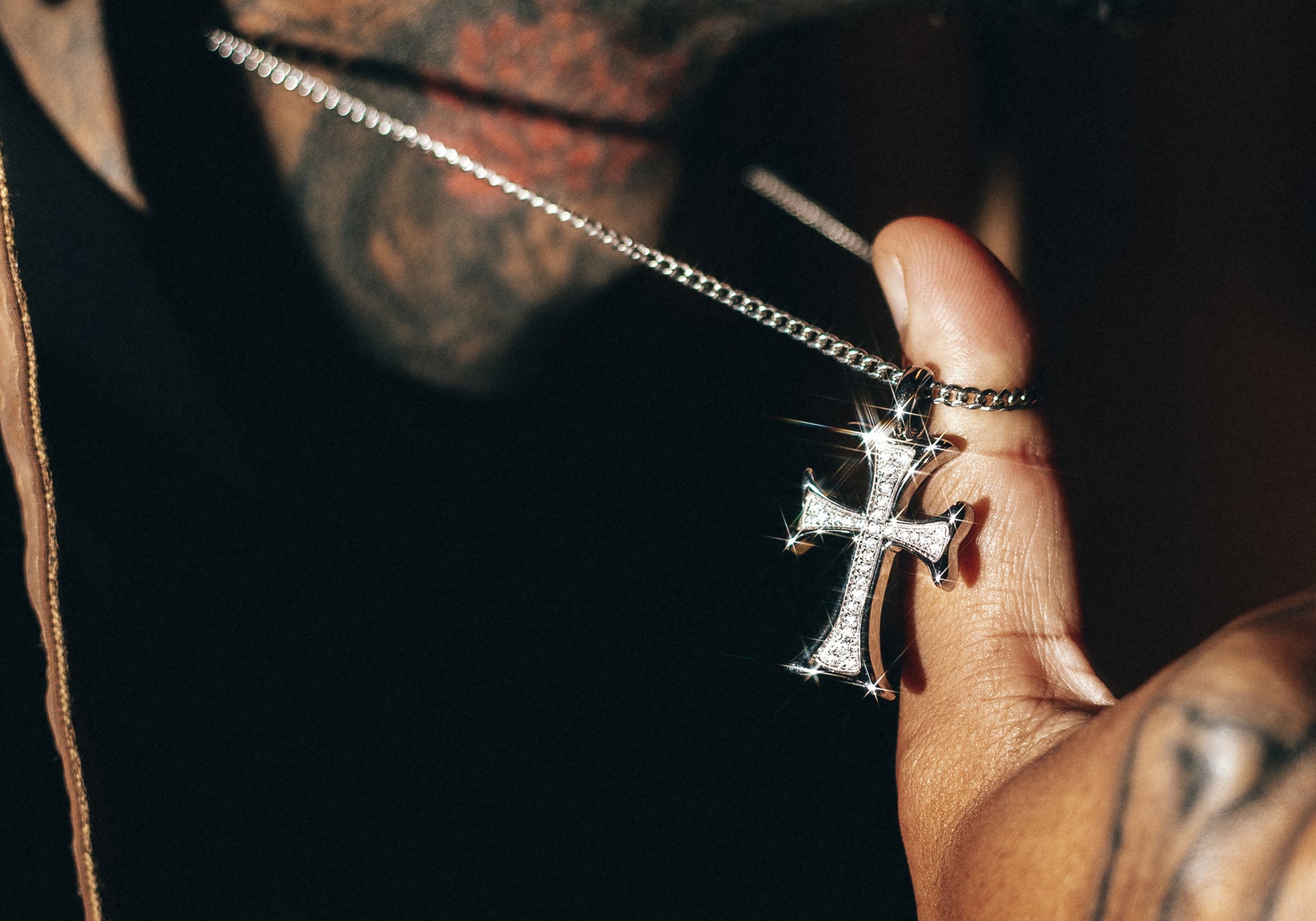 The Cathedral Cross is for those who live by their own rules. With bold curves and pavé detailing, this piece merges raw edge with timeless style. Inspired by classic forms but reimagined with a modern twist, it’s a cross that speaks to the rebel. Wear it as a symbol of strength and individuality—stand apart, stay true, and let the world know you’re not here to blend in.
