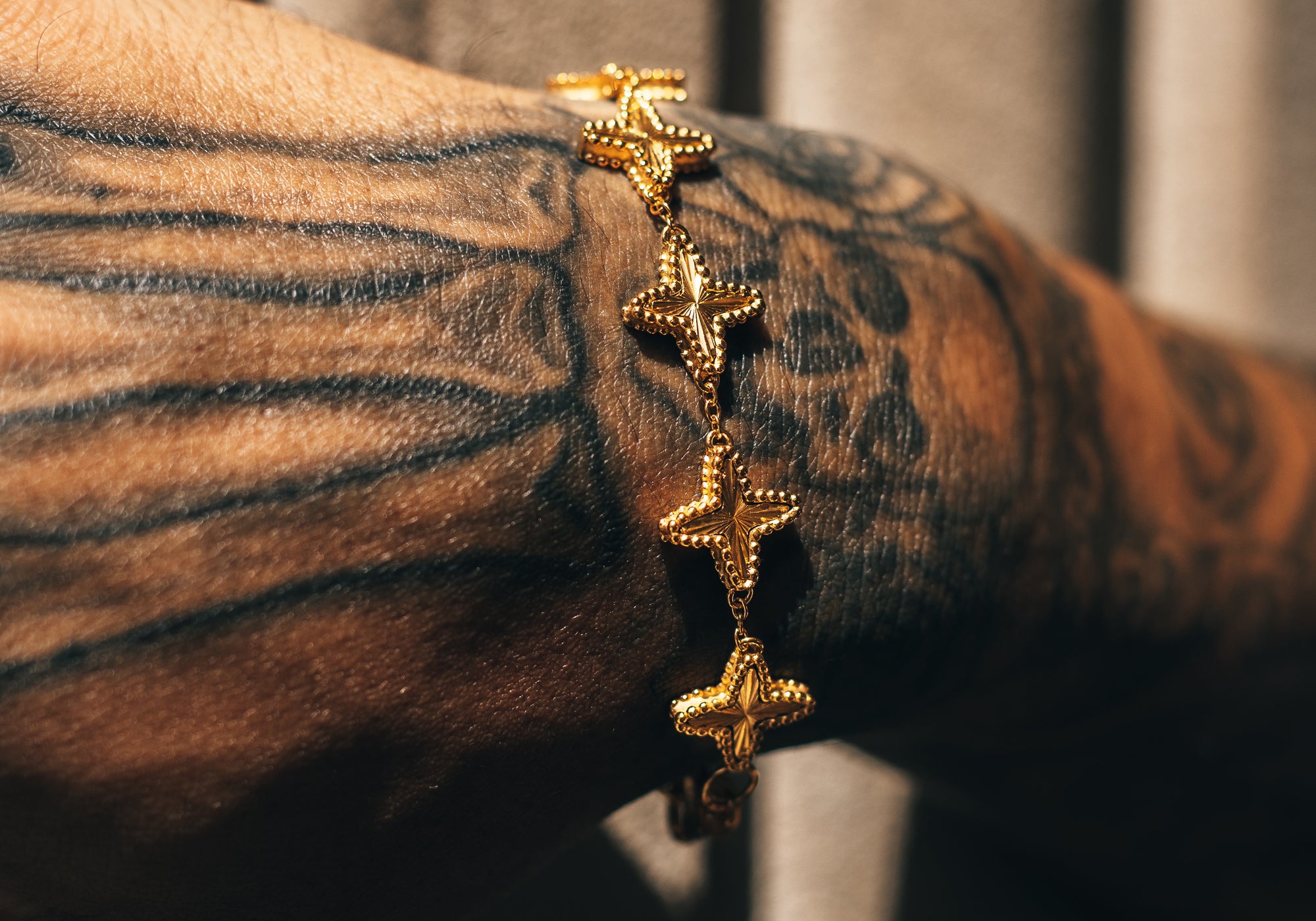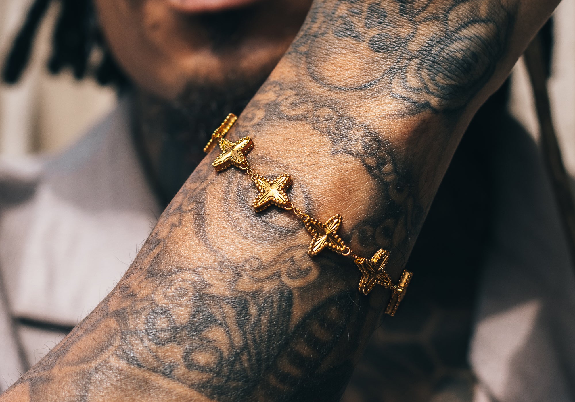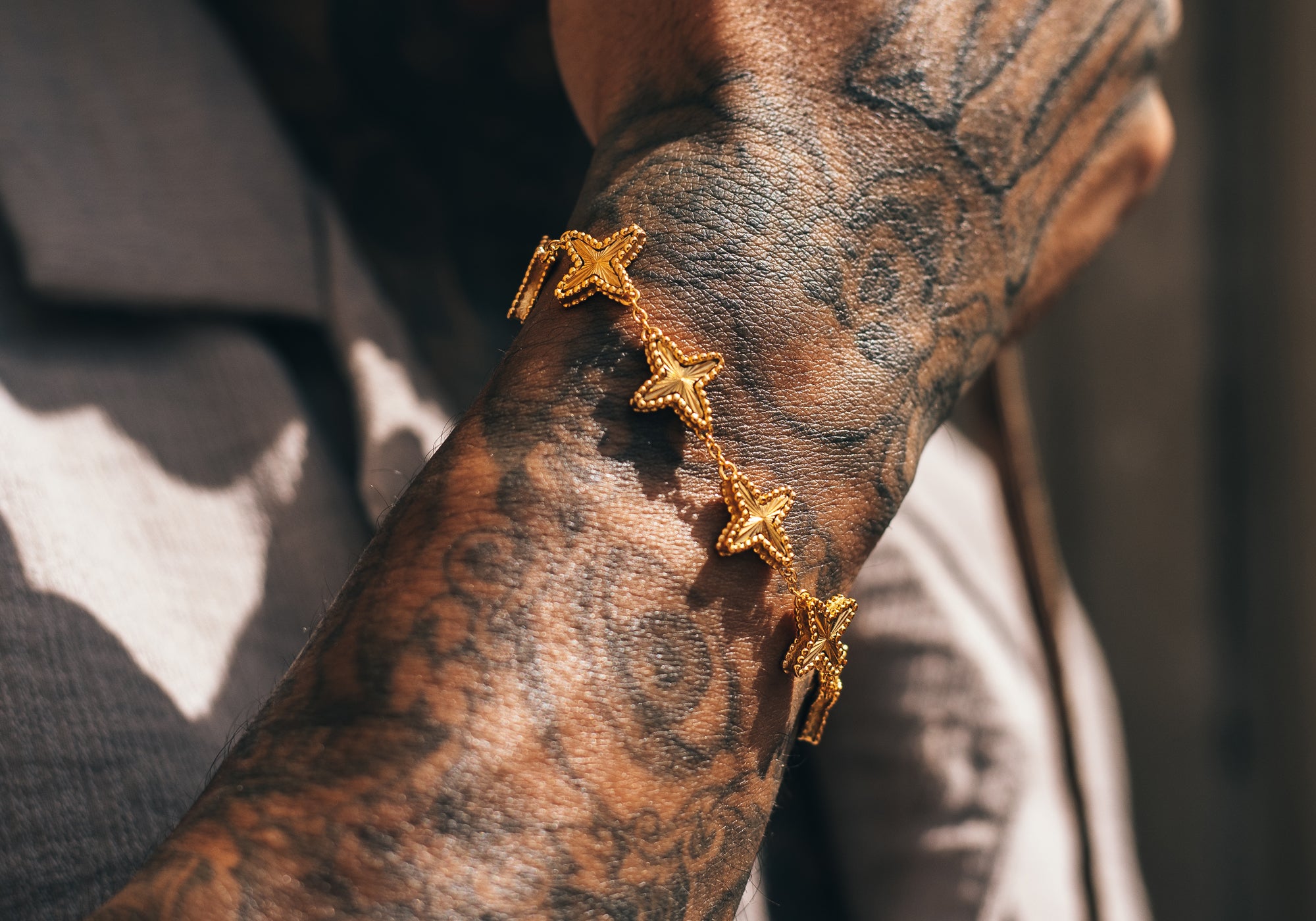 The Clovero Chain in Gold, featuring the exclusive Hommes Oro clover motif, embodies status and prestige. The all-gold design speaks to the elite man, offering a timeless and bold aesthetic. Perfectly worn solo or styled with any other bracelet in your collection. As an authentic limited edition piece, only a few will ever be made, making it a true emblem of exclusivity.