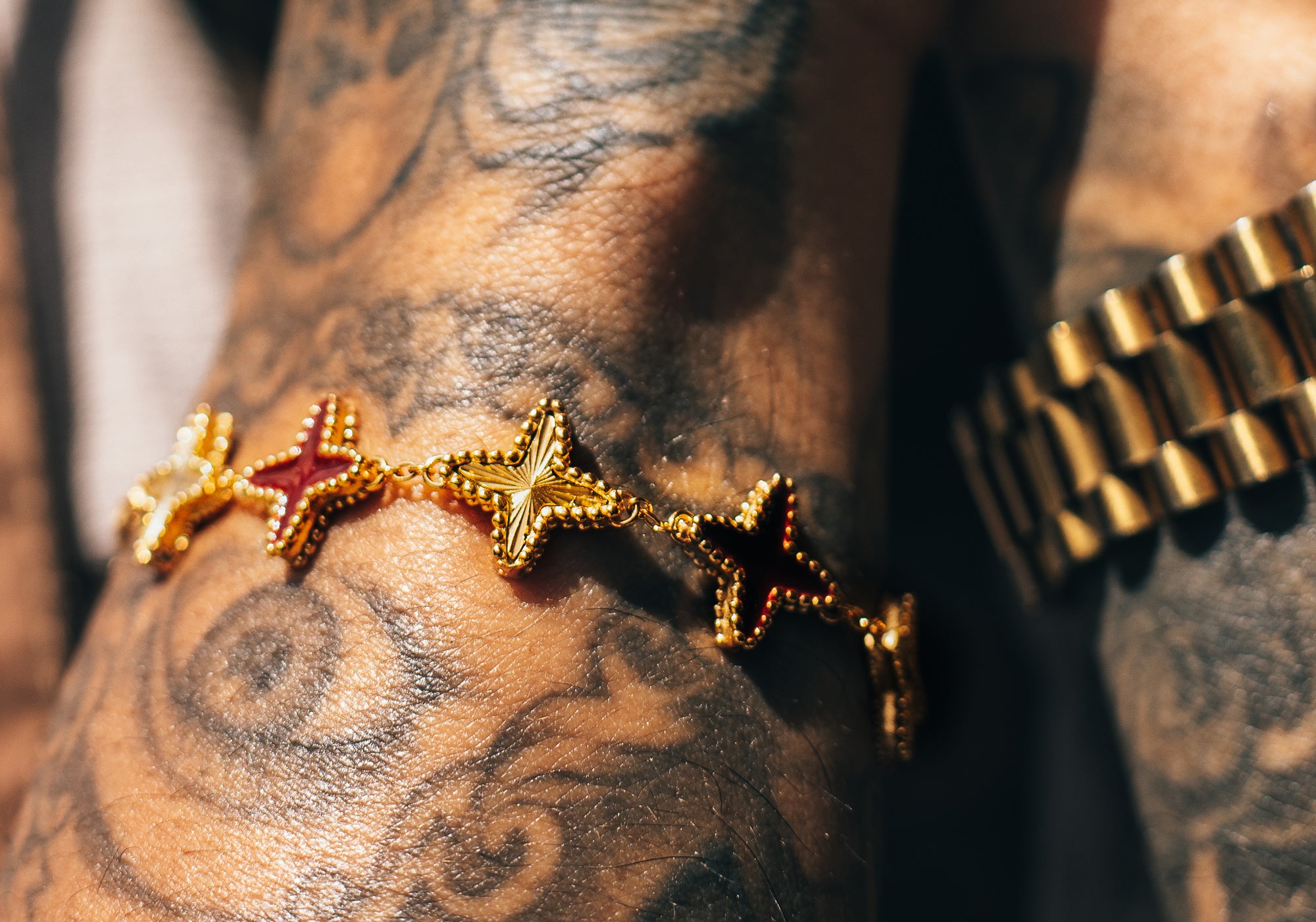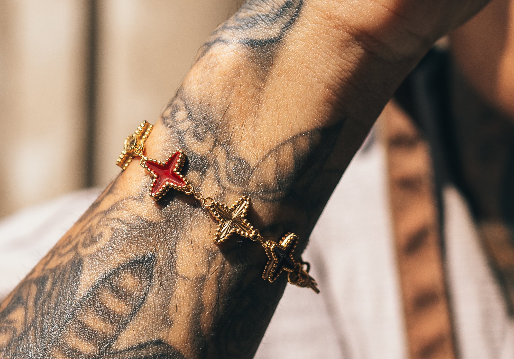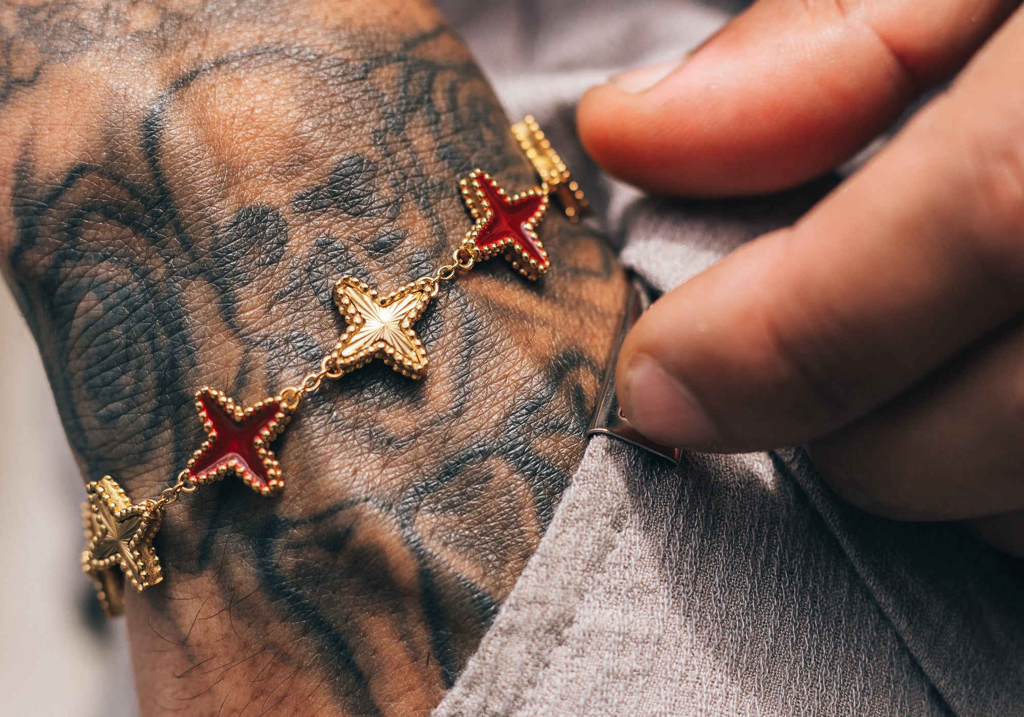 Featuring the exclusive Hommes Oro clover motif with a rich, deep red enamel finish, this bracelet radiates power and distinction. The luxurious crimson and gold combination is perfect for those who appreciate the finer things in life. As a limited edition piece, it's crafted for those who seek uniqueness and class, ensuring you stand out in any setting.