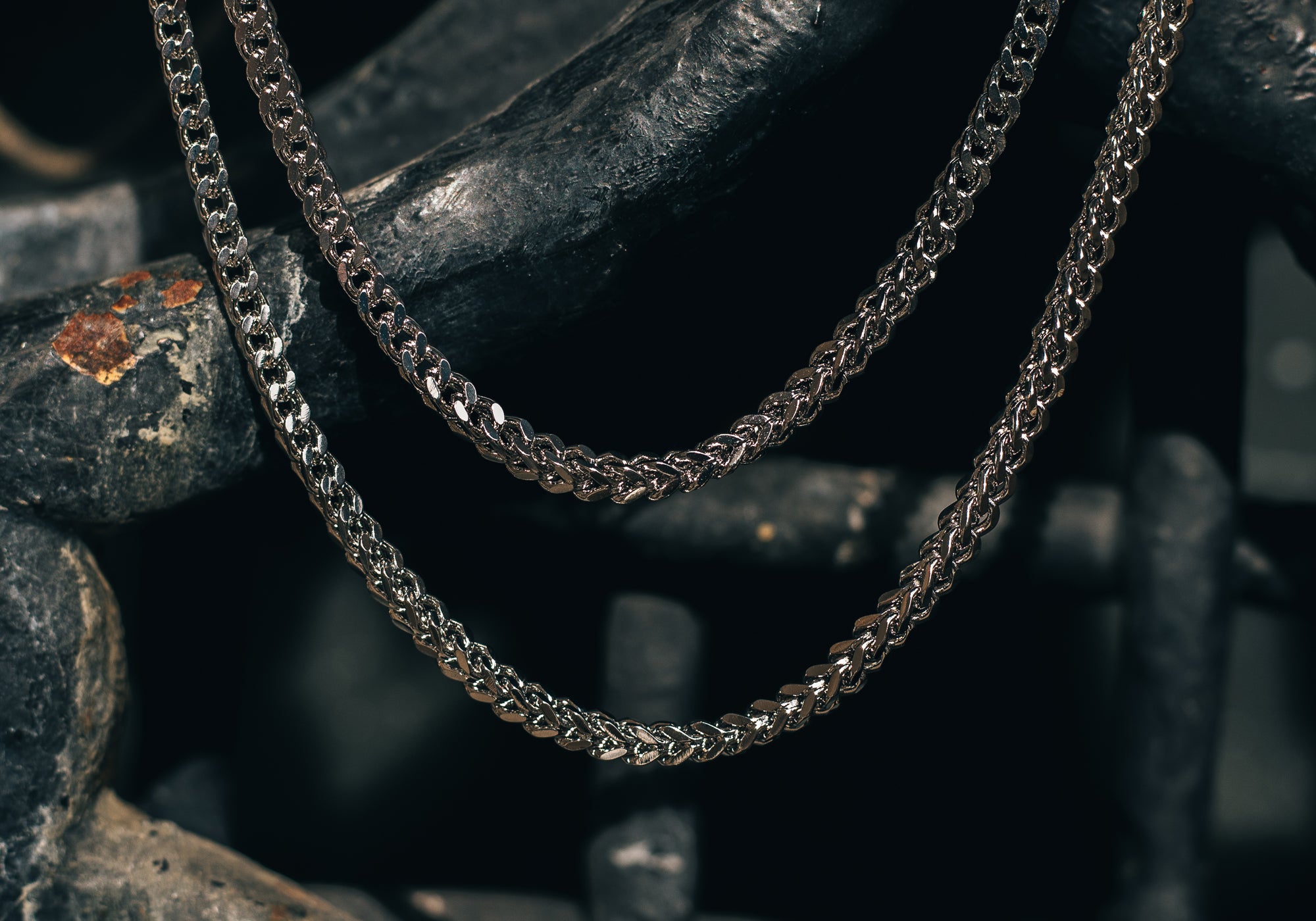 Introducing the Franco Chain Stack – a dynamic pairing of two of our silver Franco chains at 20" and 22". The 20" chain sits close for a contemporary vibe, while the 22" adds sophistication. The interwoven links create a classic appeal, making it perfect for any occasion. This distinct stack emanates an air of nobility and luxury.