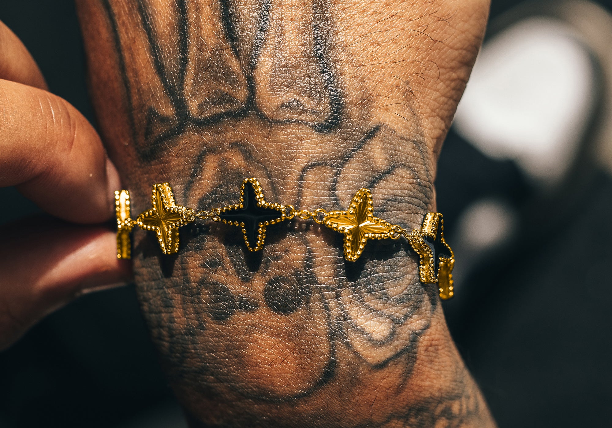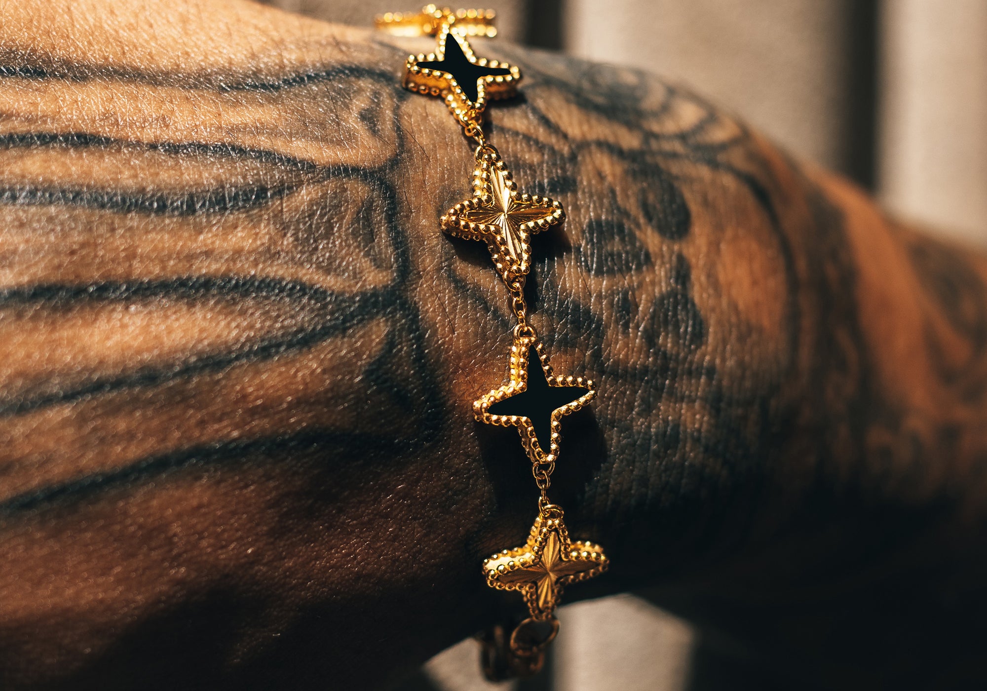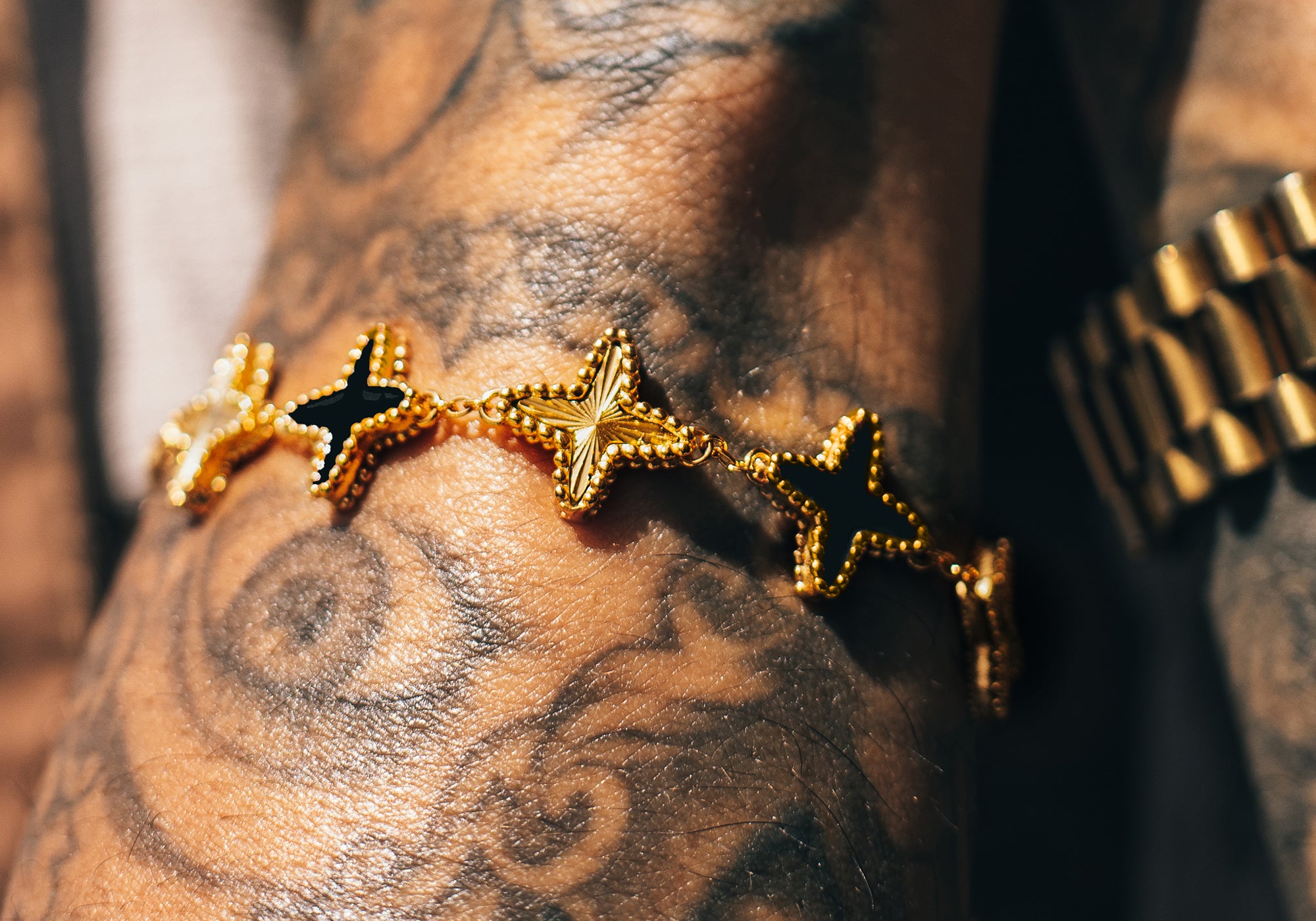 A design favorite among those who lead with confidence and style, this bracelet features the exclusive Hommes Oro clover motif. The deep black onyx paired with luxurious gold accents creates a striking and powerful look that commands respect. Perfect for any season, this limited edition piece ensures you're not just noticed, but remembered. Only a few will ever be made, making it a true collector's item.