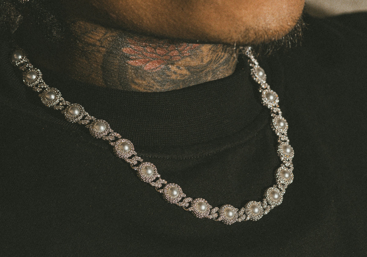 Introducing the Pearl Bezel Cuban Chain, a true symbol of luxury and refined style. Featuring lustrous freshwater pearls bezel set within a bold Cuban link design, each link is meticulously crafted with hand-set pavé stones that capture light with every move. Designed to turn heads and elevate your look from day to night, this chain captures a classy and exclusive aesthetic. Pair it with the Pearl Bezel Cuban Bracelet for a complete, high-status ensemble.