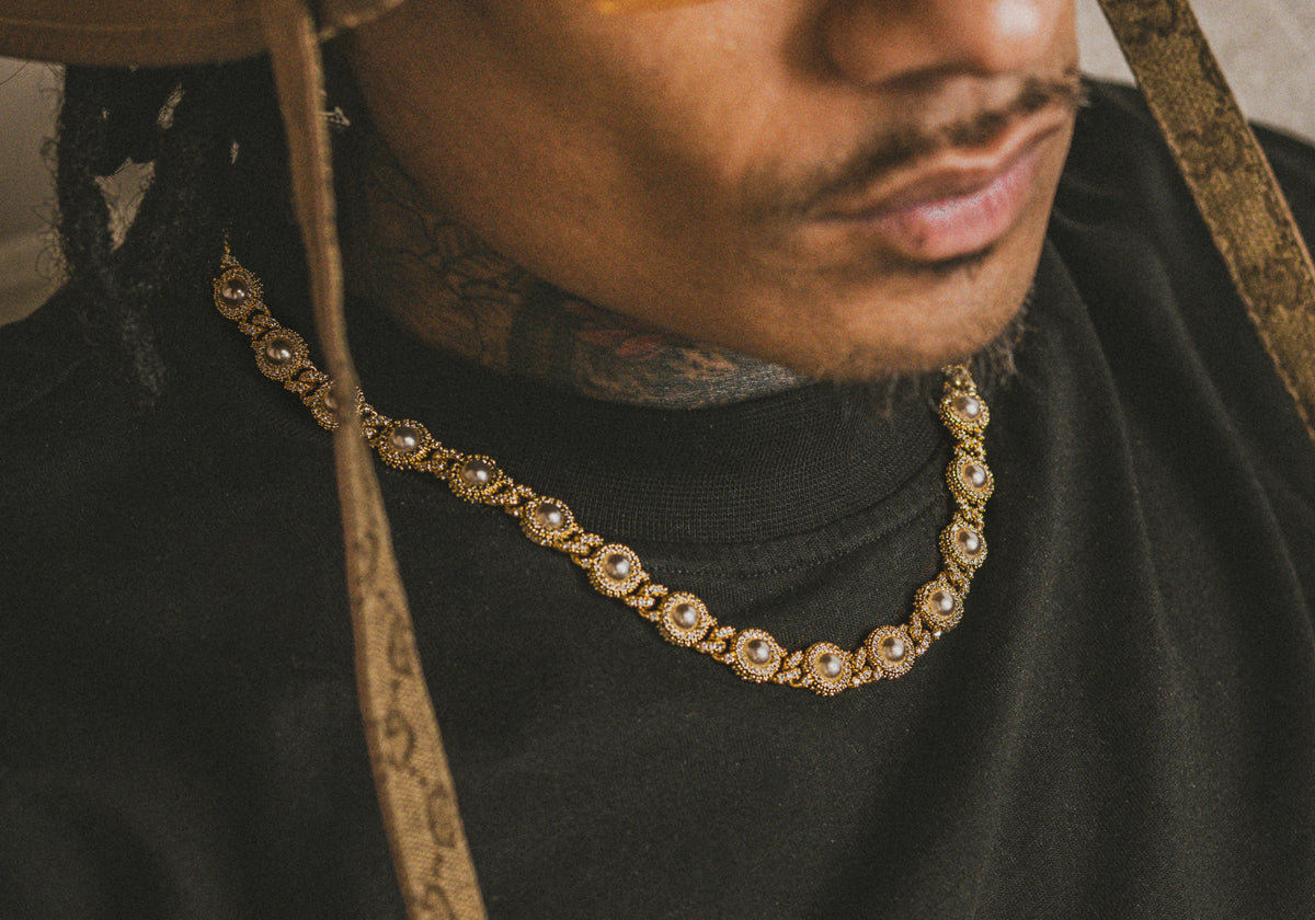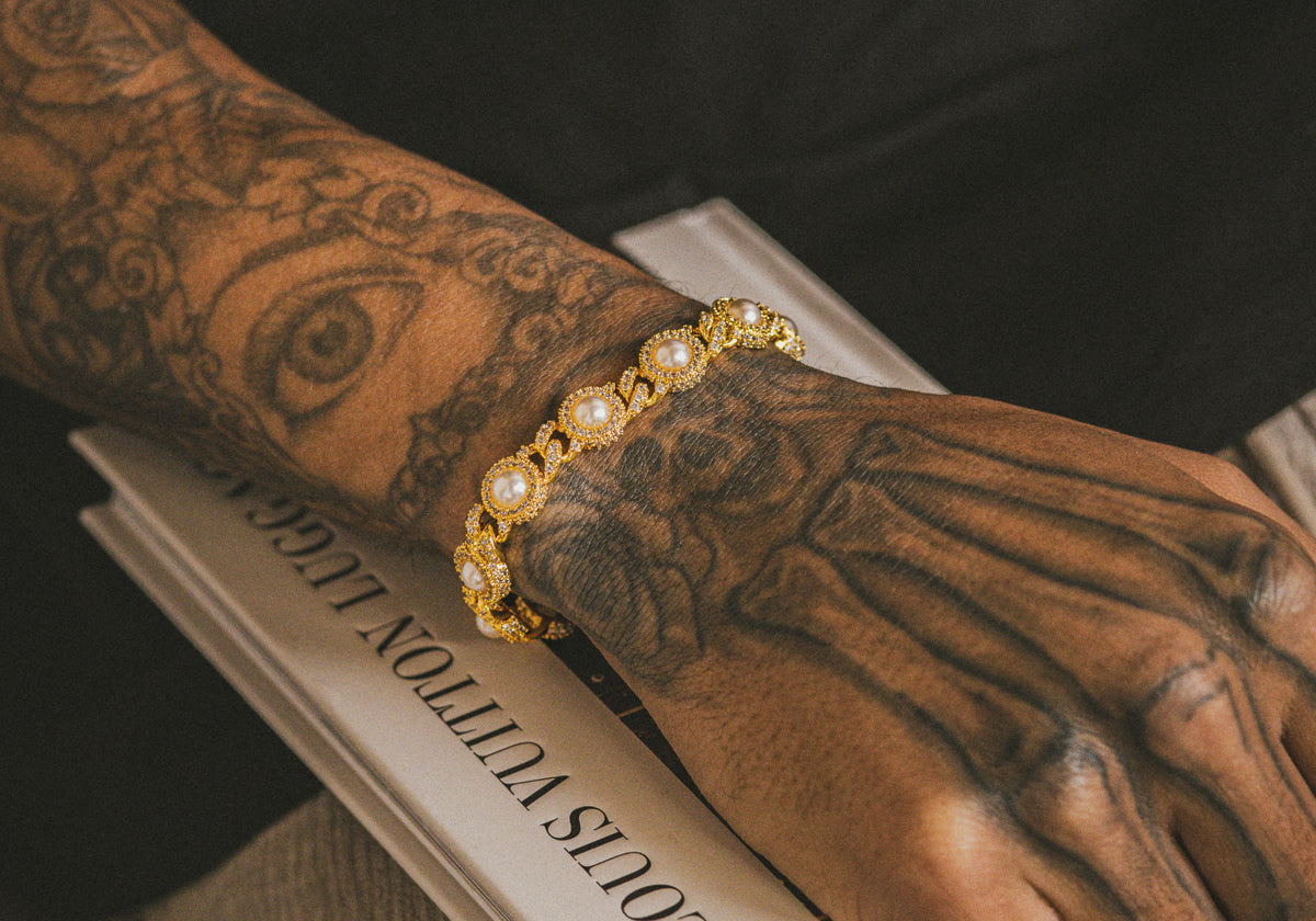 Introducing the Pearl Bezel Cuban Set, a true symbol of luxury and refined style. Featuring lustrous freshwater pearls bezel set within a bold Cuban link design, each link is meticulously crafted with hand-set pavé stones that capture light with every move. Designed to turn heads and elevate your look from day to night, this chain and bracelet set captures a classy and exclusive aesthetic.