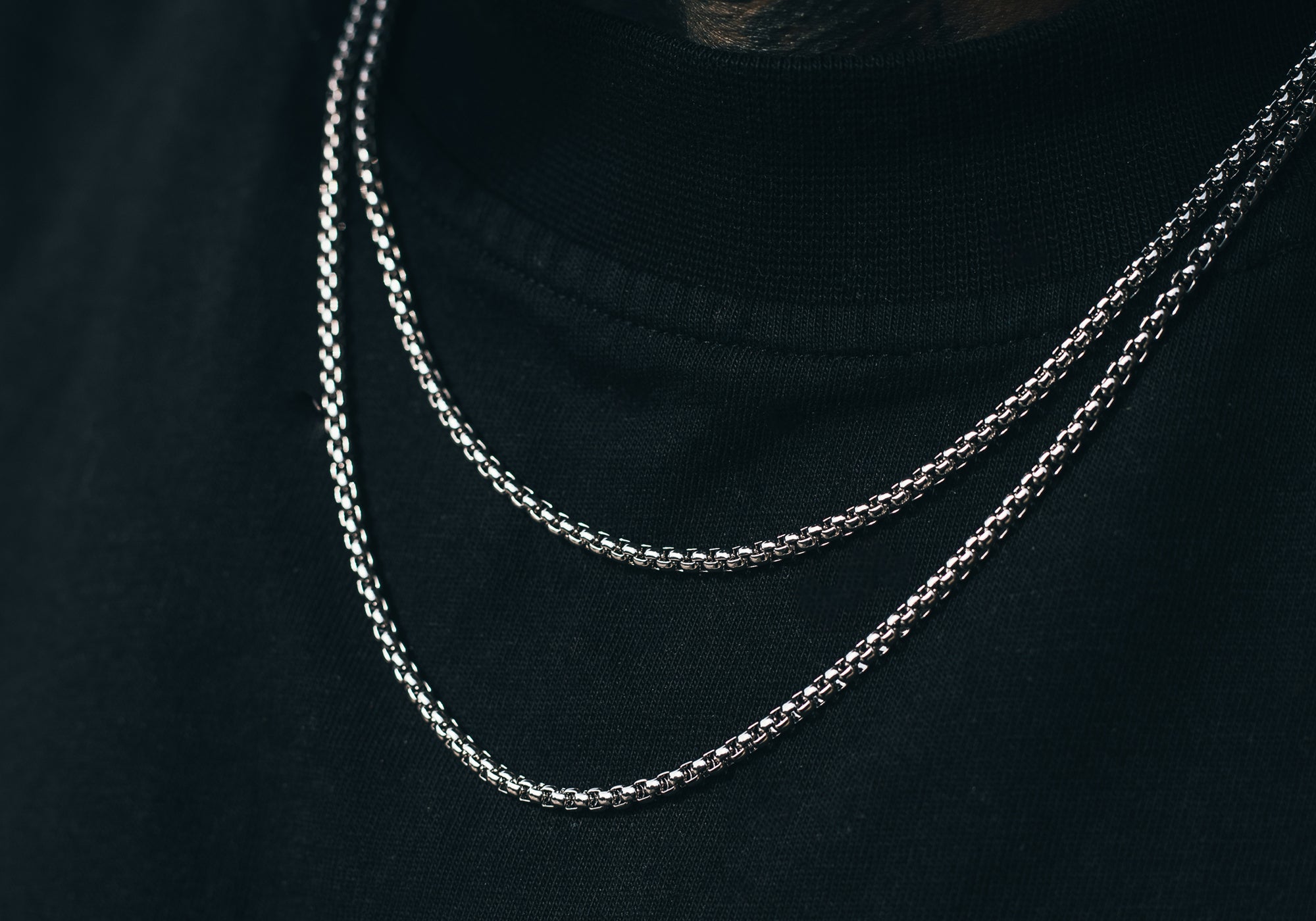 The Venetian Chain is a Round Box Chain that traces its historical roots back to Venice, Italy, but has evolved into a modern chain with several variations. Our silver Round Box Chain Stack features two chains at 20" and 22" with interlocking square links embellished with rounded edges for a sleek, smooth impression.