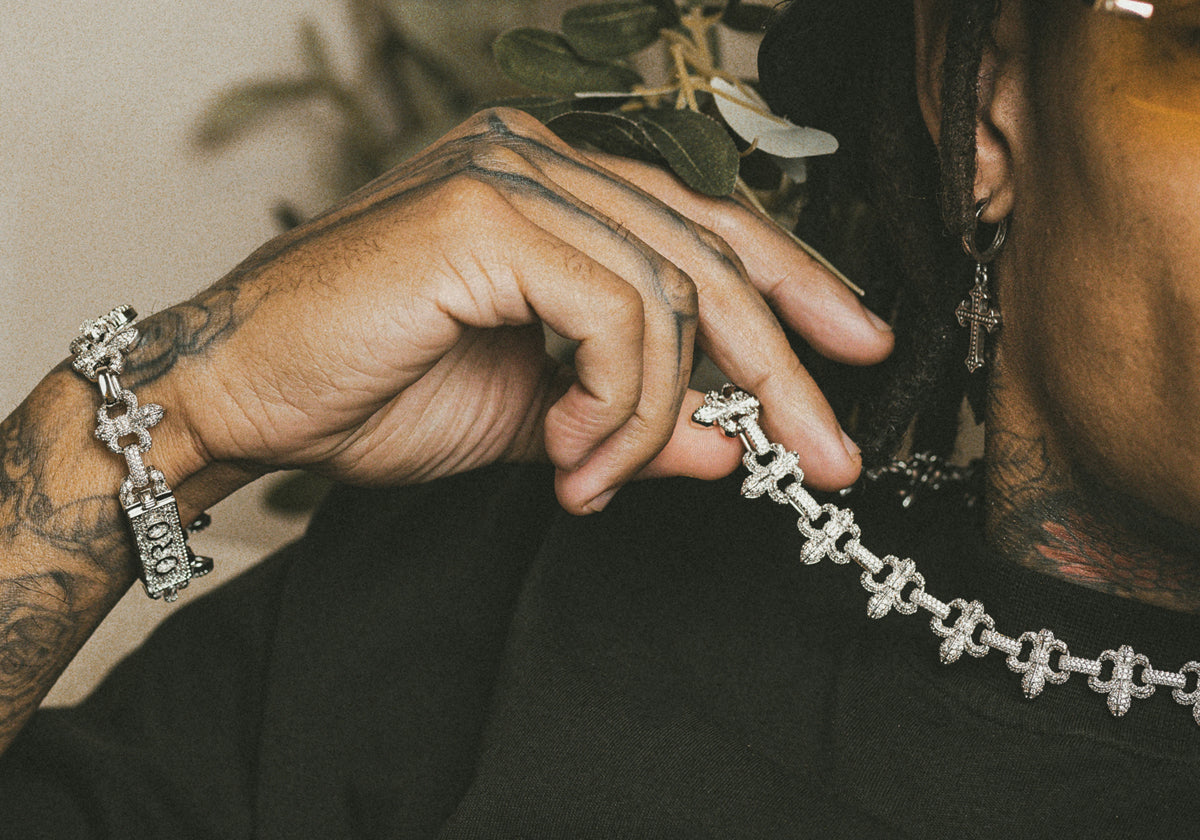 The Victory de Lis embodies luxury and royalty, drawing inspiration from the Fleur de Lis—a symbol of victory and nobility. Each link features luxurious pavé-set stones, radiating a superior aesthetic. Finished with a heavy, high-end exclusive "ORO" clasp that snaps securely into place, this piece is crafted to endure and captivate. A true statement of power and prestige for those who demand unparalleled style.